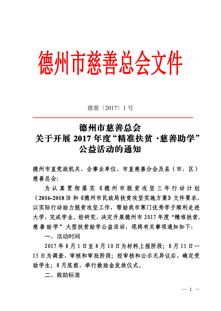 附件下载:2017年度德州市慈善总会“精准扶贫·慈善助学”公益活动审批表(1)(2)(3)