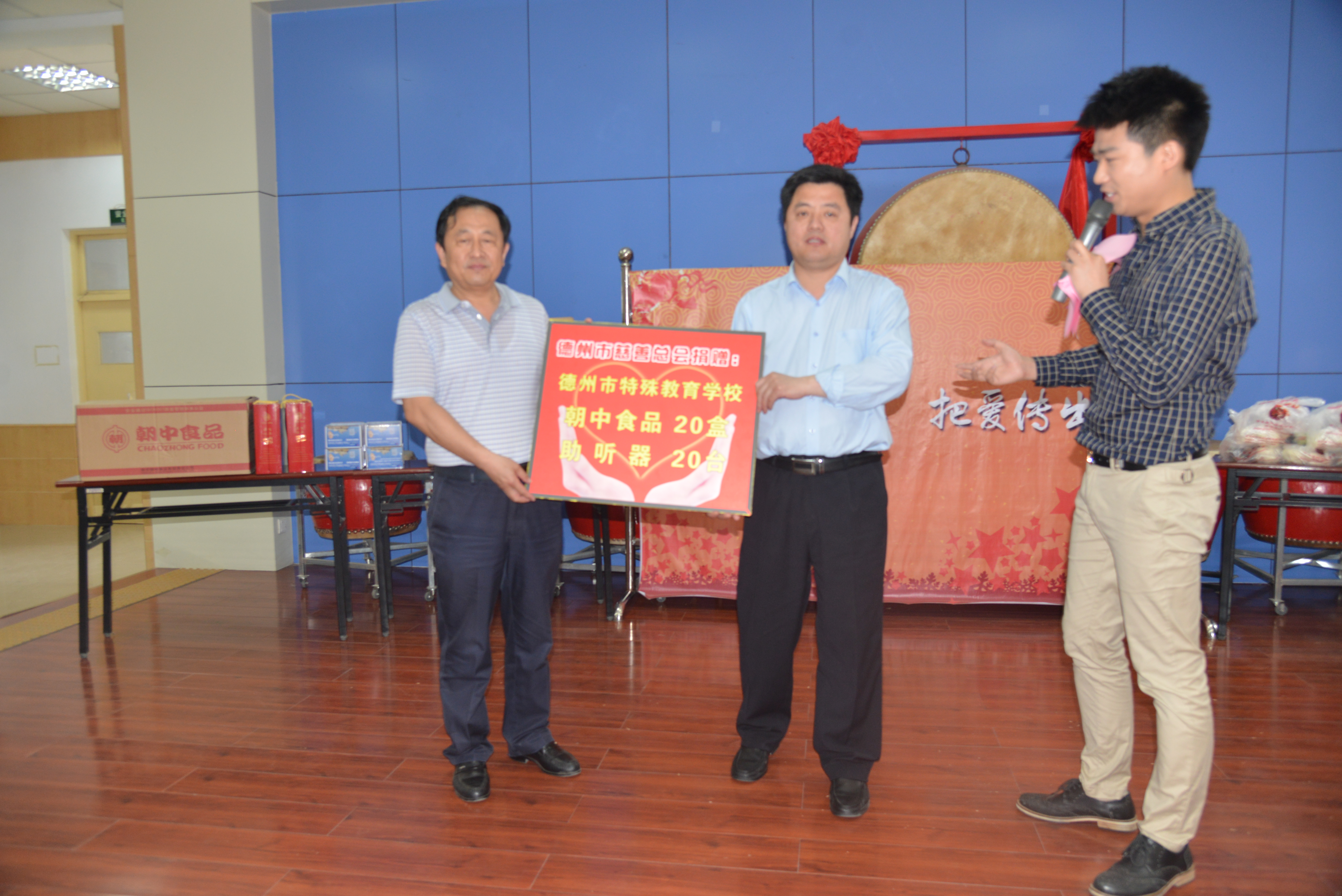 本次爱心助残活动中,德州市慈善总会向德州市特殊教育学校捐赠20台助听器以及20盒食品,最后,相关领导与德州特殊教育学生一起合影留念。