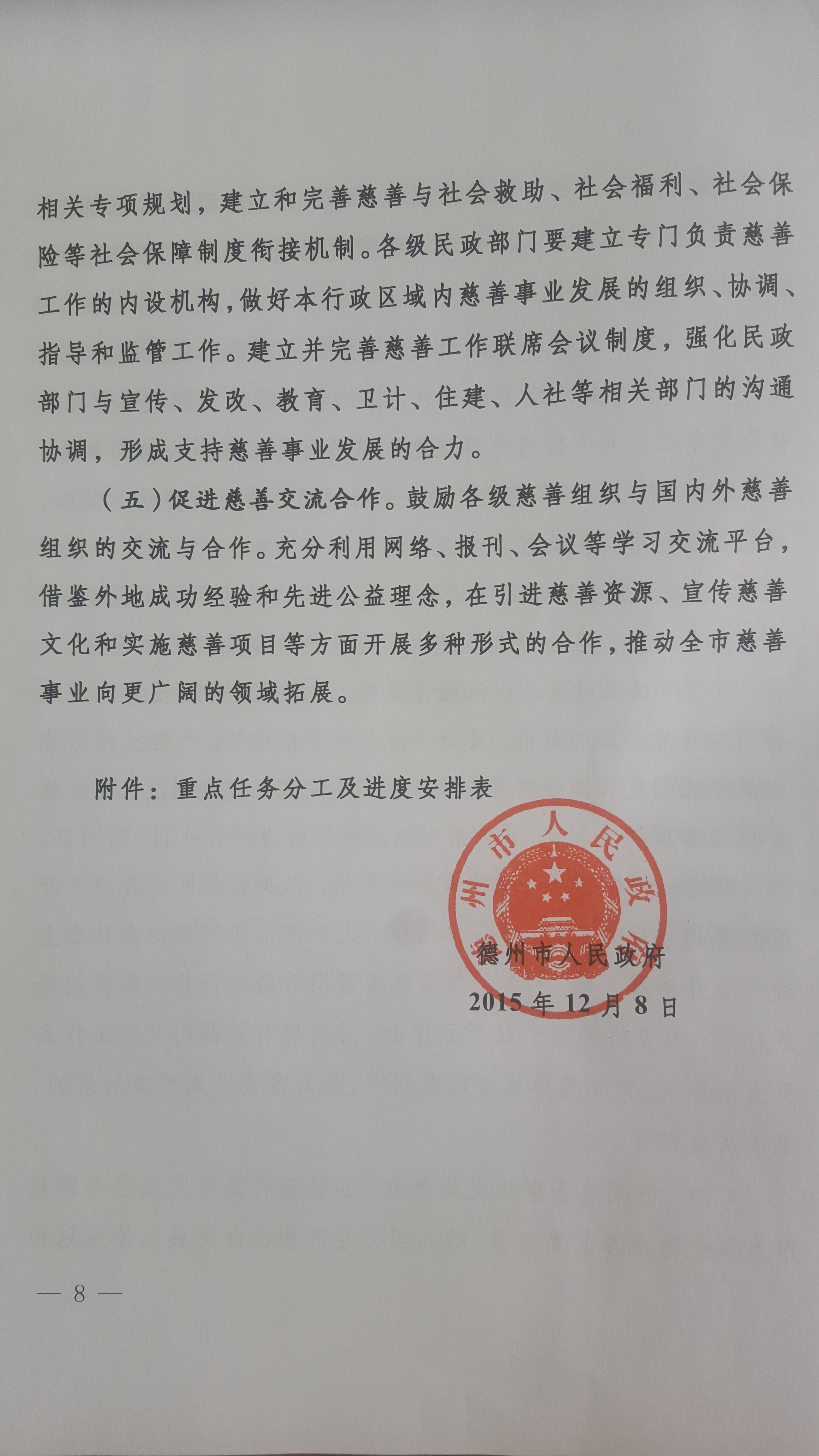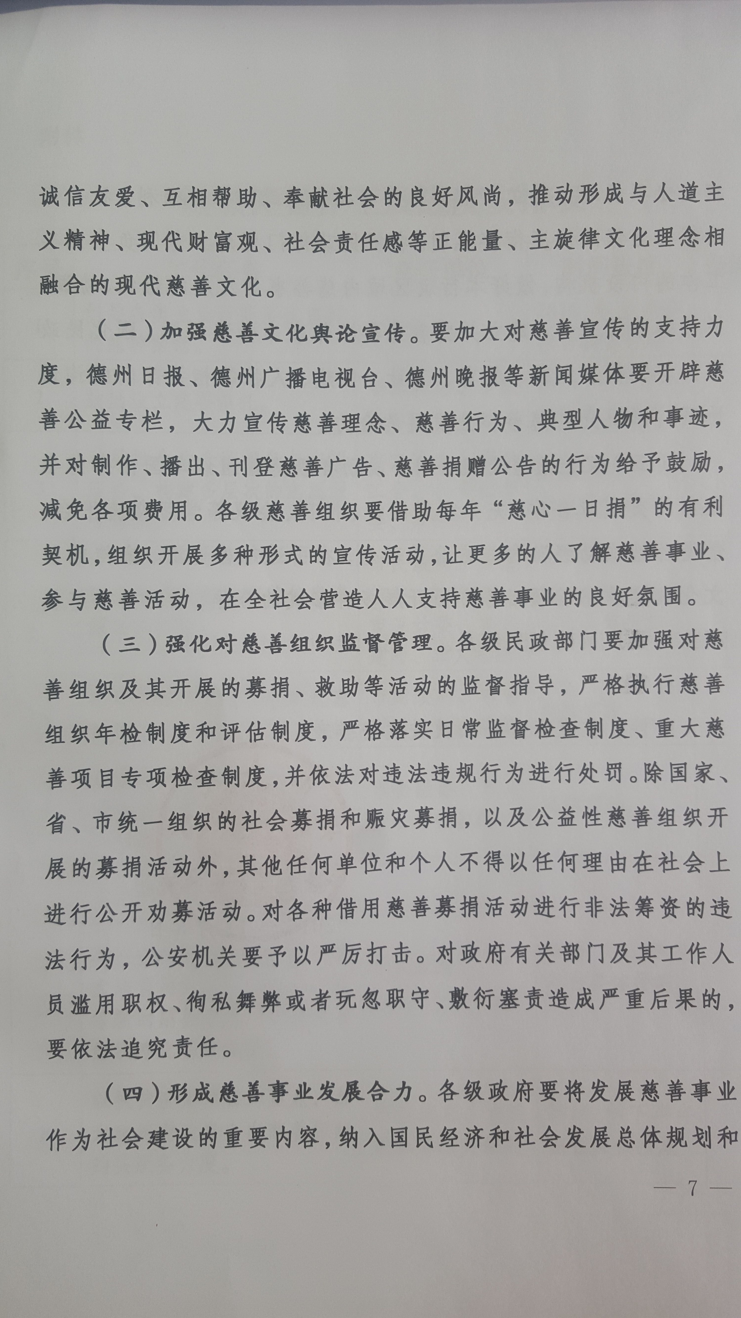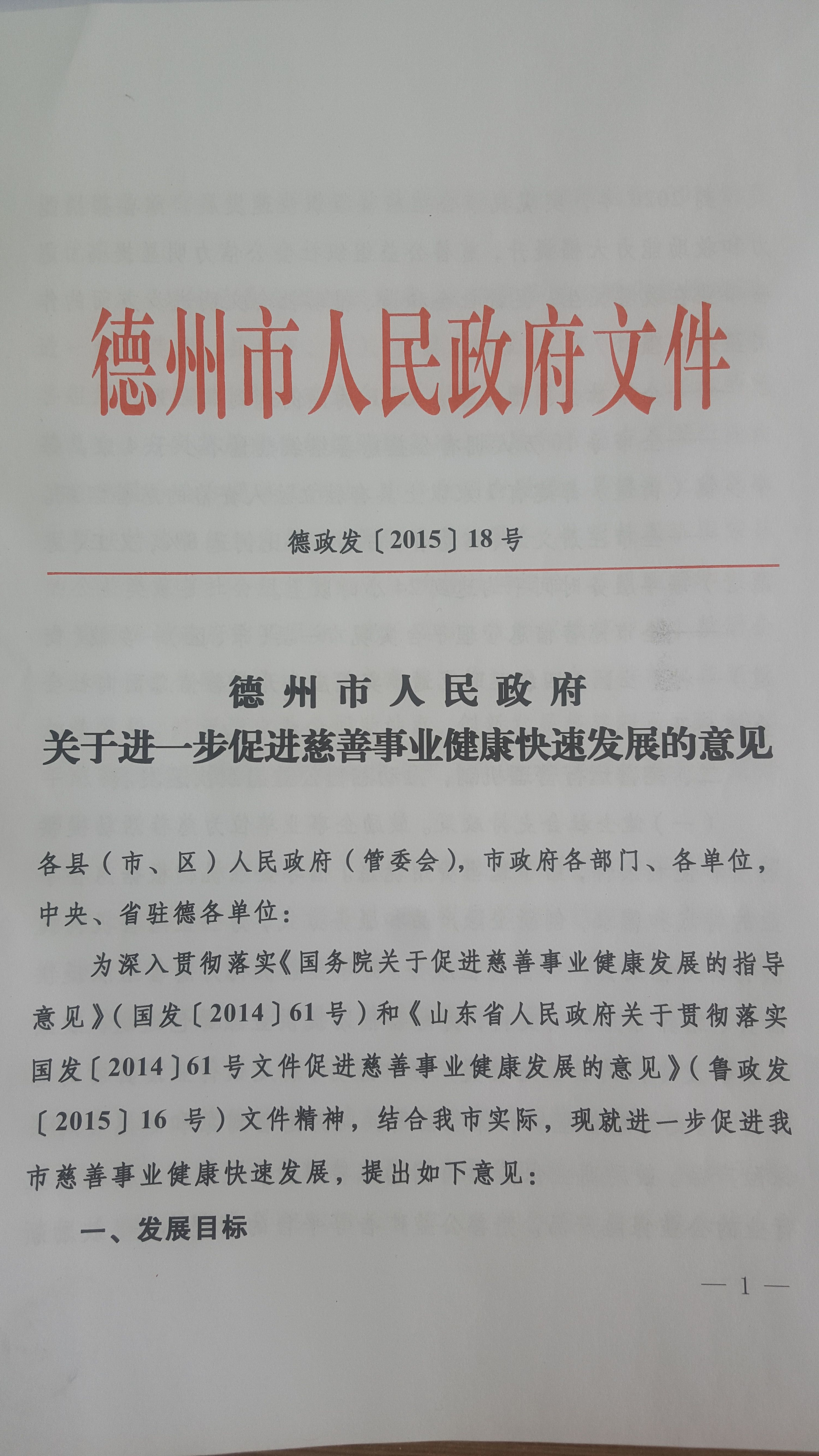 德州市人民政府 关于进一步促进慈善事业健康快速发展的意见